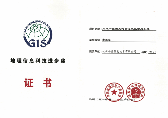 地信三維一張圖土地登記發(fā)證三等獎(jiǎng)-公司